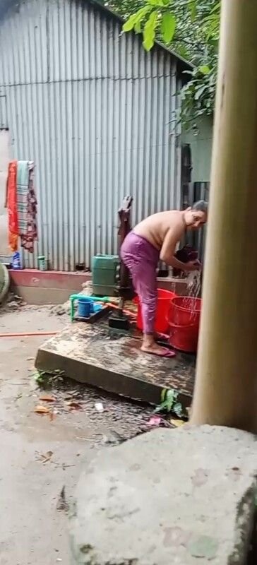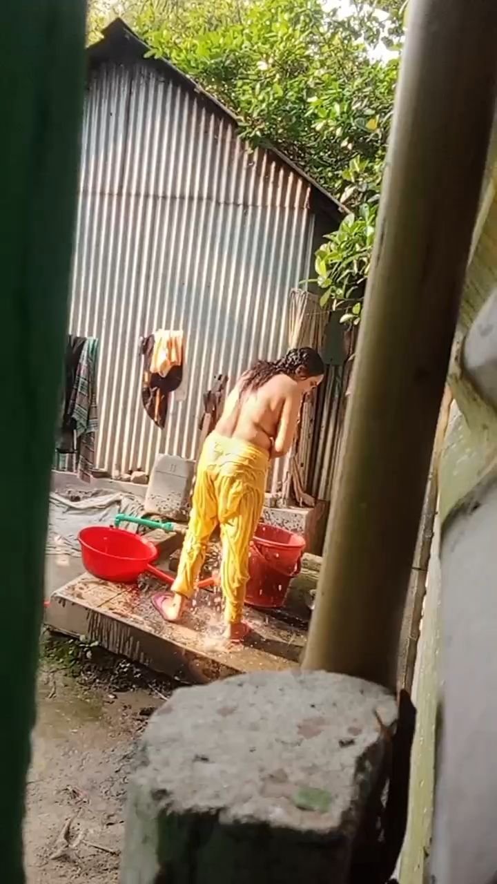 Beautiful Village Bhabhi Nude Bathing In Outdoor Bathroom Captured By Neighbour
